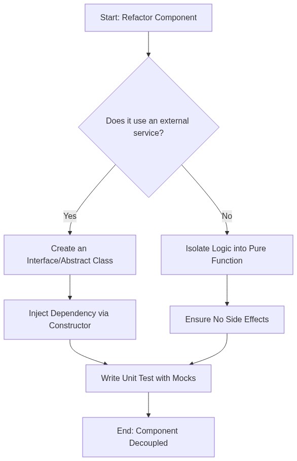 | Extract Logic | Move business rules into separate, pure functions. |