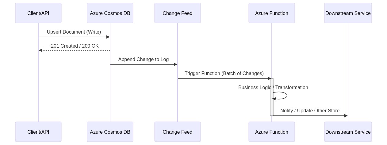 The Change Feed allows you to decouple your primary write store from downstream consumers. This is essential for maintaining O(1) or O(log n) write performance on your main database while offloading heavy processing to asynchronous background tasks.