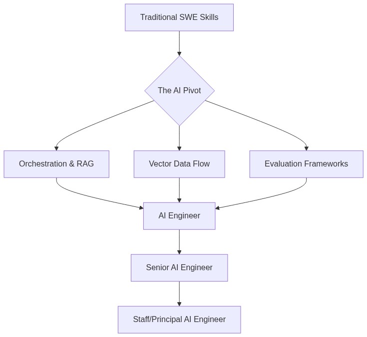 The transition from Software Engineer to AI Engineer is not about abandoning your previous decade of experience. It is about augmenting it. The industry doesn't need more people who can just talk to chatbots; it needs engineers who can build the systems that make those chatbots reliable, scalable, and valuable. Your journey from Senior SWE to Staff AI Engineer starts with your first evaluation framework. Start building.